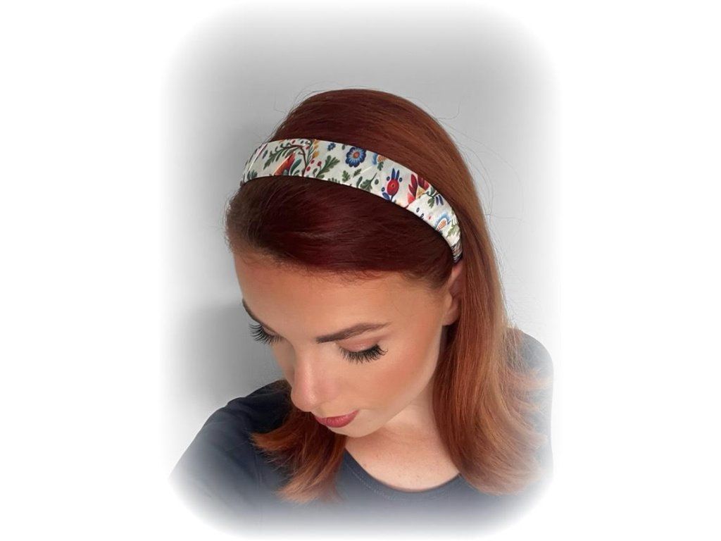 Z vnitřní strany má čelenka sametový podlep, který zvyšuje přilnavost k vlasům. Díky tomu drží lépe než hladký satén, ale stále počítej s tím, že nebude držet tak pevně jako čelenky z hrubších materiálů nebo se zoubky.