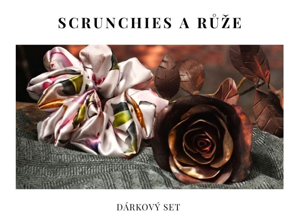 Součástí setu je kovová růže, která neuvadne, a saténové scrunchies Píďa Style, které si můžeš přizpůsobit podle svého stylu.