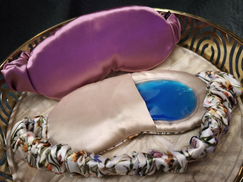 Z vnější strany je použit jemný satén, který je příjemný k pokožce, neelektrizuje vlasy a působí luxusně. Uvnitř masky se nachází měkká, pohodlná výplň a vyjímatelná gelová vložka, díky které maska krásně sedí na obličeji, netlačí a zajišťuje kvalitní zatemnění.