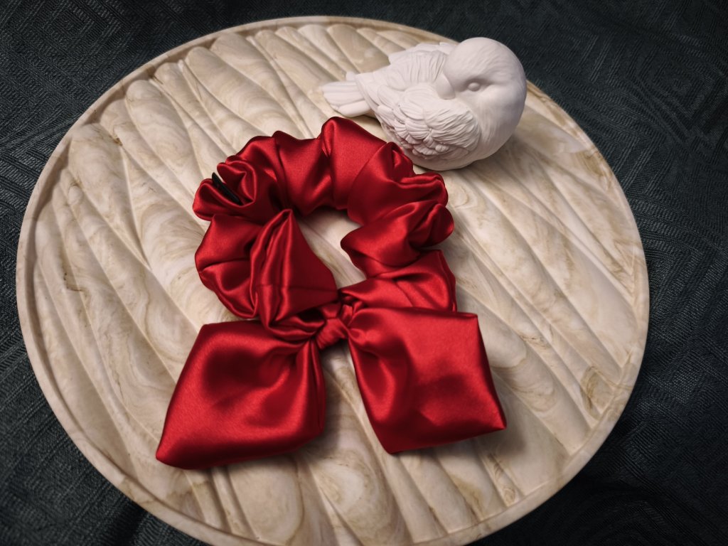 Saténová scrunchie s mašlí ve velikosti MIDI je skladová varianta výraznějšího vlasového doplňku Píďa Style. Gumička je doplněná o samostatnou mašli.