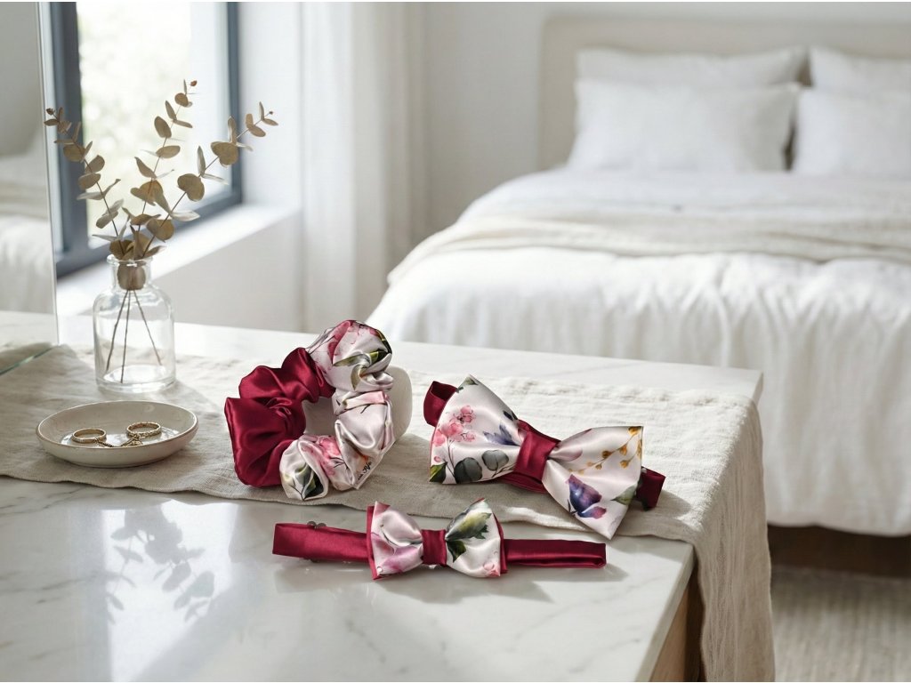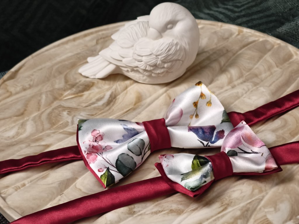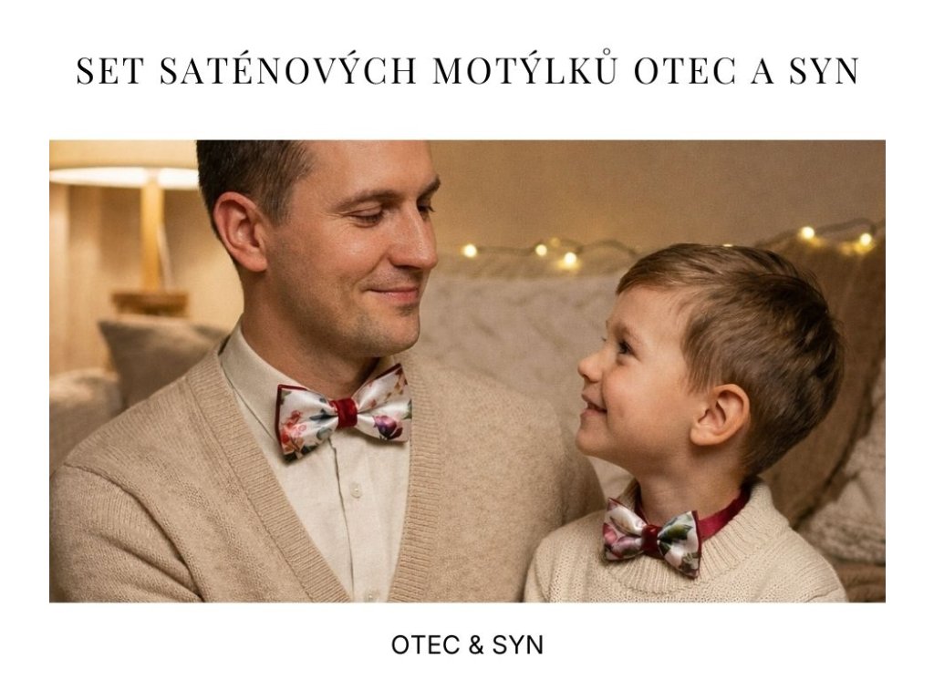 Set motýlků otec & syn je elegantní doplněk pro slavnostní příležitosti, kdy chcete být sladění, ale stále působit přirozeně a vkusně. Set obsahuje dva motýlky – pánský a dětský, ušité ve stejném stylu.